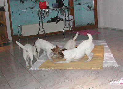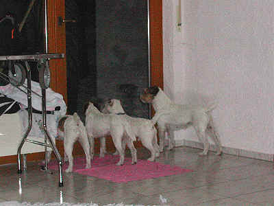 Gruppenbild mit Russells | Frauchen ist eine rauchen und läßt uns nicht mit! |