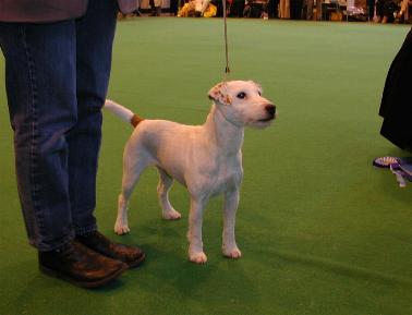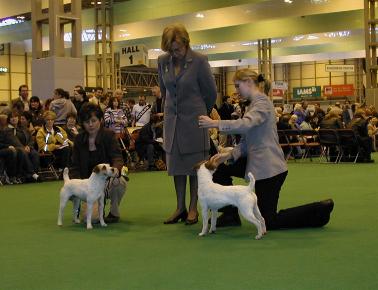 Am Ausstellungsgelände angekommen wollte natürlich jeder zum Ring seiner Rasse, so machten wir als Treffpunkt den Ehrenring aus. Am Parson Ring angekommen, suchte ich mir einen guten Platz zum schauen und fotografieren und wen sehe ich, einen Parson Züchter , der auch mit seiner Ortsgruppe die Crufts besuchte. Keine 5 Minuten später tippt mir beim fotografieren jemand auf die Schulter und sagt: „Hätte ich mir denken können, dass ich dich hier treffe“ und vor mir steht eine Agility-Kollegin, die auch einen Parson Rüden besitzt. Zusammen sahen wir uns das Richten an, es waren insgesamt 128 Parson gemeldet, die von Mrs. J P Wood zügig gerichtet wurden. Einige sehr schöne Parson waren vertreten und man konnte leicht in Versuchung geraten sich einen mit nach Hause zu bringen. Die Ringe waren hier einfach nur durch Stühle begrenzt und die Aussteller sehr großzügig mit ihren Hunden, die sich gerne von den Zuschauern streicheln ließen. Einer fühlte sich so gut, dass er sich im Ring auf dem Rücken wälzte. |