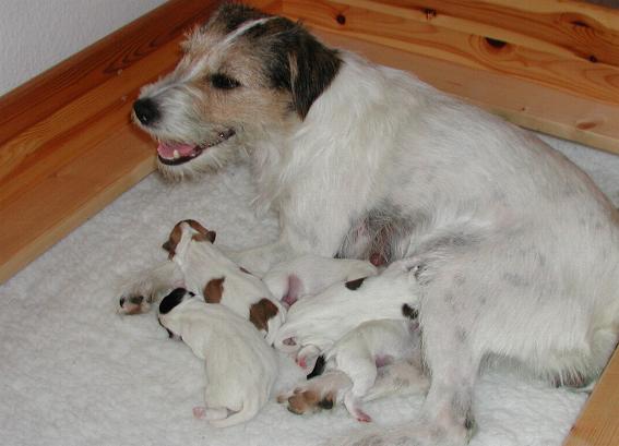 Am 28.04.2003 sind  3 Rüden und 2 Hündinnen zur Welt gekommen.