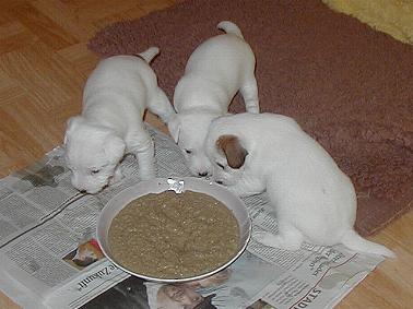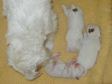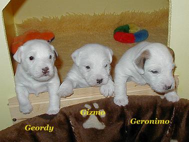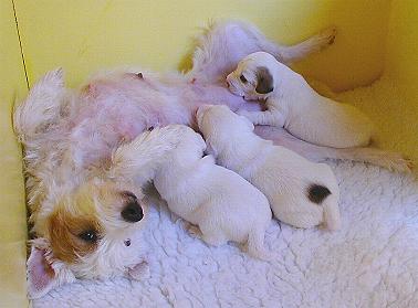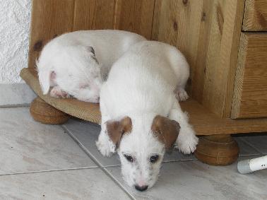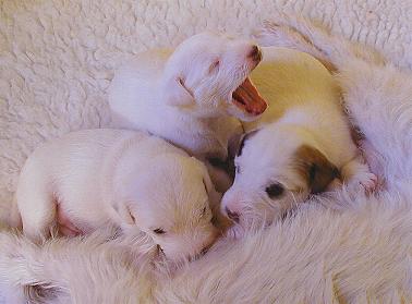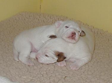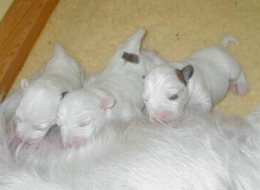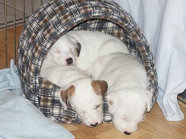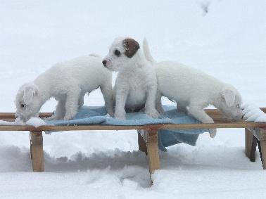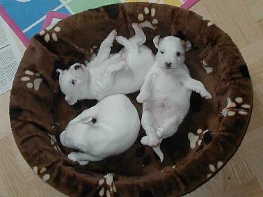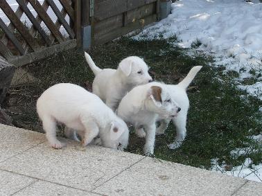 Am 9. Januar 2005 sind unsere Welpen geboren, 3 Rüden, braun-weiß